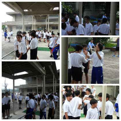 体育の後はミストで身体の熱を冷ましています。