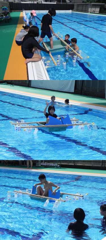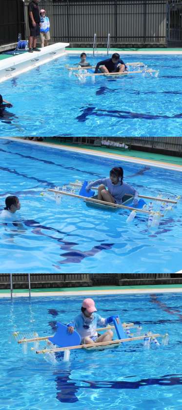 フィールドサイエンス部 廃品利用船でのプール縦断大成功!