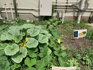 しかし、オクラ・甜瓜・ナスには大きな実がなり、かぼちゃはツルをのばし大きな花を咲かせていました。学校に来たら、一回見てみてください。