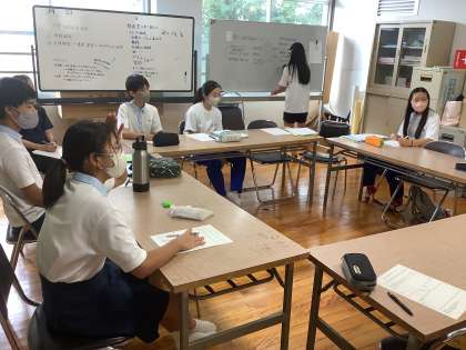 夏休み初めに行った支部生徒会交流会での話を共有し、八条中ではどのような取組をしていきたいかを話し合いました。