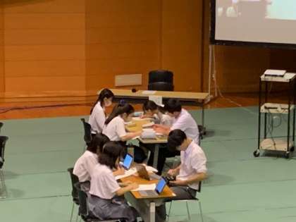 本日、総合教育センターにて、各支部の代表の生徒が集まり、校則について議論しました。