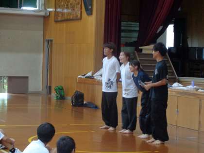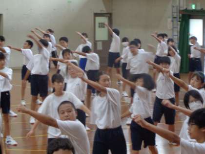 今日からは実際に大学生に来ていただき、体育祭で発表する集団演技「京炎そでふれ」の動きを教えていただいています。大学生の講師の方々は元気いっぱいで一生懸命教えてくださっています。そんな姿からもいろいろなことを学んでほしいと思いました。写真は1年生の様子です。みんな初めてのダンスですが、とても上手でびっくりします。一生懸命頑張る姿がたくさん見られ、本番が今から楽しみです。