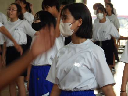 体育の授業では体育祭で披露する「京炎そでふれ」を練習しています。