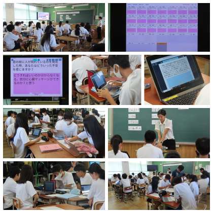 少し緊張した表情でしたが、この3週間で学んだことや経験したことを活かして、授業を進めていました。また、ロイロノートや話し合い活動を取り入れて、生徒たちも一生懸命活動をしていました。