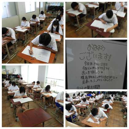 校舎の3階は非常に暑いですが、集中して取り組んでいます。