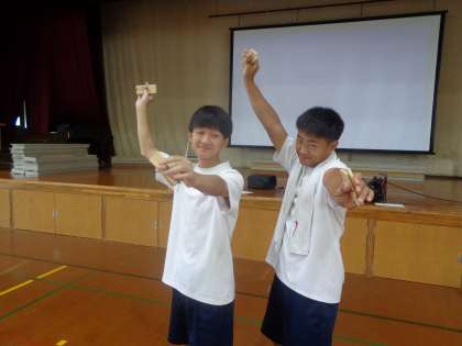体育祭当日に向けて、体育の授業で「京炎そでふれ」に使用する鳴子をつくりました。グループで教え合いながら一生懸命取り組んでいます。当日素晴らしい発表になるようがんばっていきましょう!