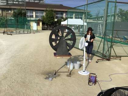扇風機の風を利用し。シャボン玉の作成です。