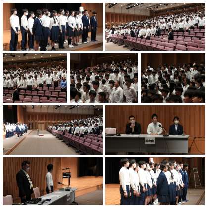 開会式の後、全員で「全校合唱(校歌)」を行い、その後、1年生の学年合唱とクラス合唱を行いました。