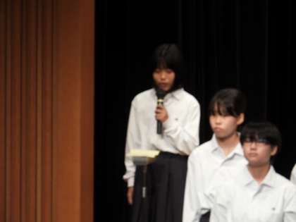 先日行われた合唱コンクールで1年2組のSさんは学年合唱のメッセージを発表してくれました。