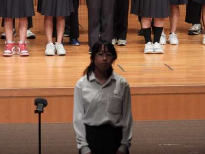 先日行われた合唱コンクールで1年2組のYさんは指揮者としてクラスをリードしてくれていました。また、普段は連絡ボードにクラスに向けてのメッセージを記入するなど、みんなを励まし、支えとなっています。「きらり☆」です。