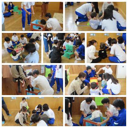 自分たちで作った車や宝箱など、幼児に楽しんでもらえるように、とても一生懸命作ったことが伝わってきました。また、実際に幼児と触れ合う活動でも、みんな優しい表情で接していました。
