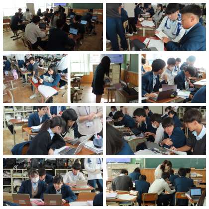 授業中は、1人で黙々と学習する人やペア、グループで学習する人など、さまざまな形で取り組んでいました。