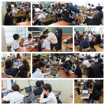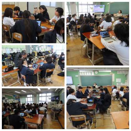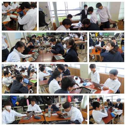 自分たちで撮った写真を使って「京都の魅力」が伝わるように、パワーポイントを使って作業をしていました。
