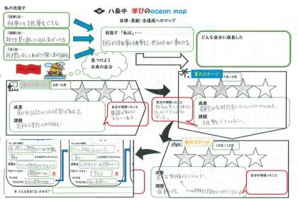 今年度から1年間の自身の目標と振り返りを行う「オーシャンマップ」を作成しています。