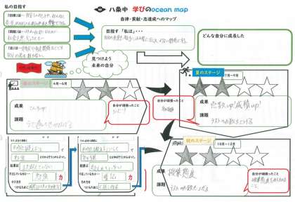今年度から1年間の自身の目標と振り返りを行う「オーシャンマップ」を作成しています。