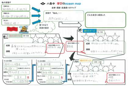 今年度から1年間の自身の目標と振り返りを行う「オーシャンマップ」を作成しています。