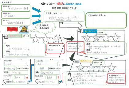 今年度から1年間の自身の目標と振り返りを行う「オーシャンマップ」を作成しています。