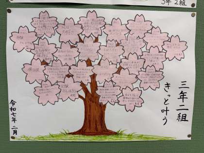3年2組にはそれぞれの思いや友達への応援メッセージが掲示されていました。