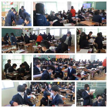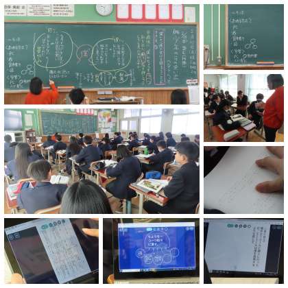1年生国語では「少年の日の思い出」という作品を題材にして、登場人物の心情の変化について読み取る授業を行っていました。教科書を根拠にして自分の考えを持ち、それをもとにそれぞれが交流して考えを深める授業内容でした。