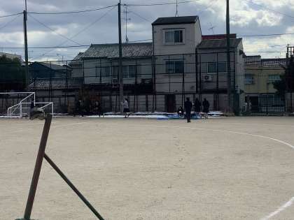 今日は3年生が入試のため、いつもより少し広いグラウンドで寒さに負けずに楽しんでいます!