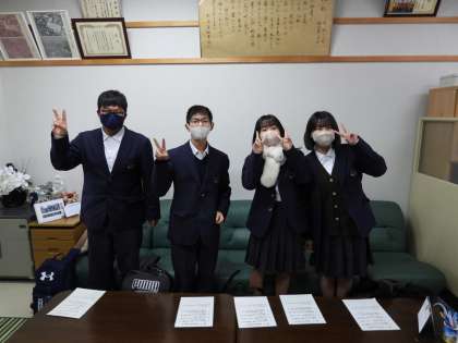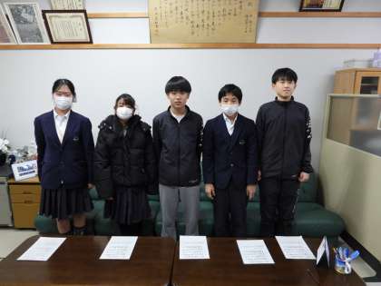 今日は昼休みに伝達表彰が入り、放課後の学習会や部活の練習中にもかかわらず、2年2組のふたグループが訪問してくれました。