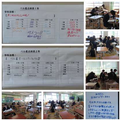 また、テスト前期間は「ベル着点検」も行っています。毎時間の授業を大切にすることで、できることや分かることが増えていくと思います。