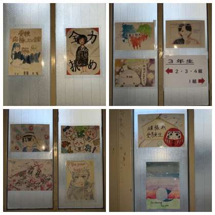 北校舎1階の3年生フロアには、美術部の人たちが描いてくれた「応援メッセージ」が掲示されています。