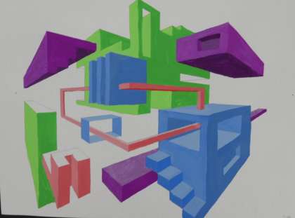 3年3組のKさんの作品はいろんな配色で構成され、工夫されたデザインです。