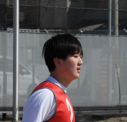 3年1組のKさん。今日の球技大会でハンドボールを行っており、相手の攻撃に対して厳しいマークを行い守っていました。「きらり☆」です。