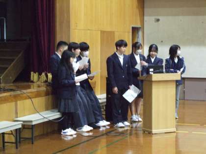 生徒会本部と議員の人たちの司会で、今までの学校生活の振返りを行い、