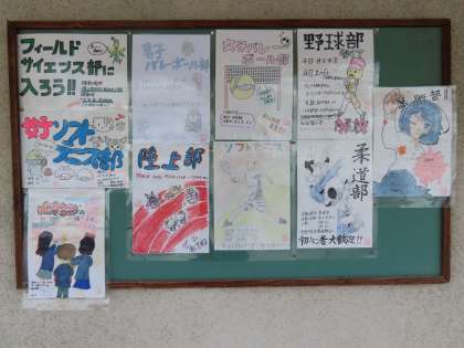 1年生は、思い思いの部活動を見学・体験して、充実した放課後の時間を過ごしています。また、校内には部活動のポスターも掲示していますので、さまざまな情報を参考に、自分が打ち込めるものを探していきましょう。