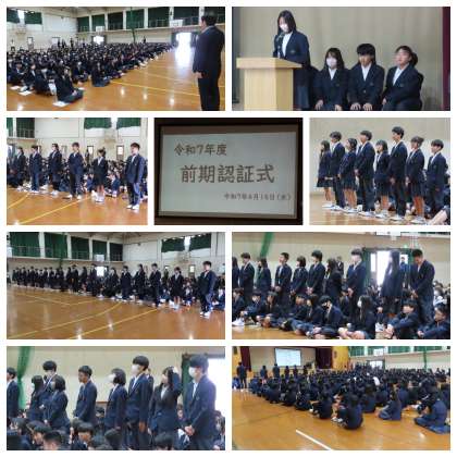 各クラスで決まった学級委員を、生徒会長やそれぞれの委員長から紹介してもらいました。その後、代表生徒が校長先生から認証書を受け取りました。