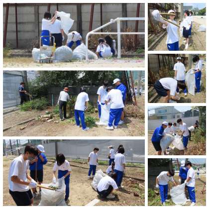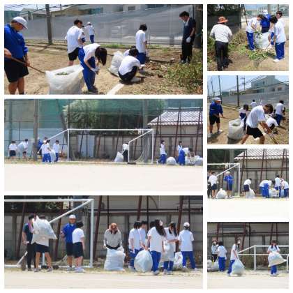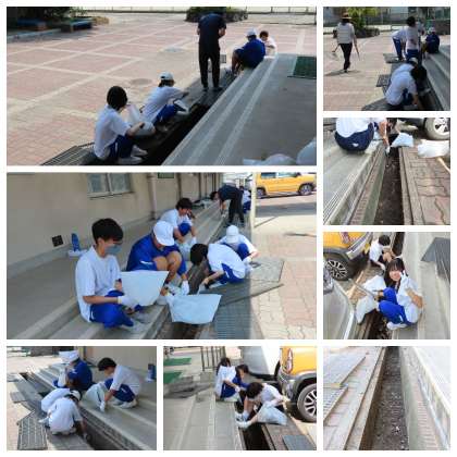 4日間の中で定休日のある人は、八条中でチャレンジ体験を行っています。今日は、体育館周辺の溝を掃除したり、グラウンドの木や草をキレイにしたりしてくれました。