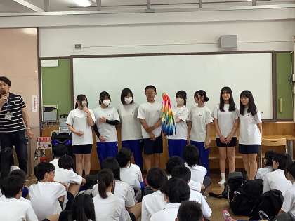 校長先生からは、「みんなが元気に、安全に過ごすこと」「時間を守って、みんなが楽しく過ごすこと」という話がありました。