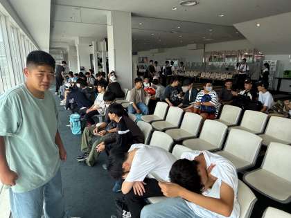 セキュリティー検査を受け、待合所で待機中です。