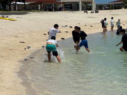 ビーチでは、みんなとても楽しそうに過ごしています。