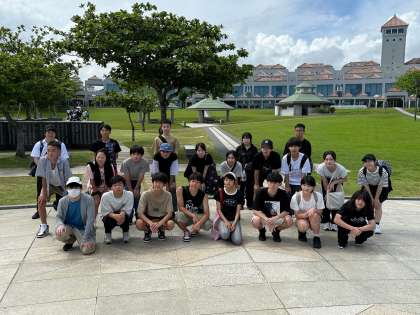平和祈念資料館バックに記念写真