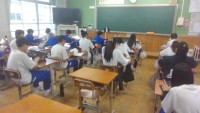初めに、学校長から「学校教育目標」について説明を行いました。また、生徒たちが取り組んでいる「オーシャンマップ」についての説明や、SNSを含む生徒間トラブルについての話も行いました。