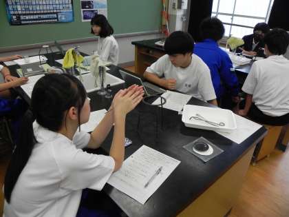 本日6月10日(火)1限・2年2組の理科実験の様子です。(ただし、1枚目の写真は土曜参観のときの2年1組の写真です。)