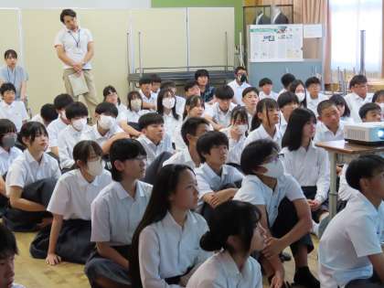 公立高校・私立高校・専門学科の3校の先生に来ていただき、それぞれの特徴を各校の事例を挙げながら説明をしてもらいました。生徒たちは、とても真剣な表情で各校の説明を聴いていました。