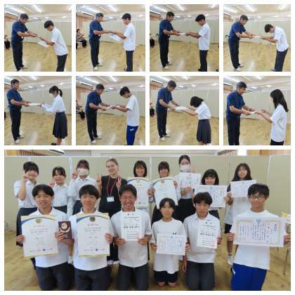 今日で1学期が終わります。2時間目には終業式を行いました。終業式に先立って、陸上競技部の他、社会を明るくする運動の標語やよい歯の伝達表彰を行いました。また、ALTでお世話になった先生が、今日で最終となります。皆さんにお礼とエールを込めたメッセージを伝えてくれました。