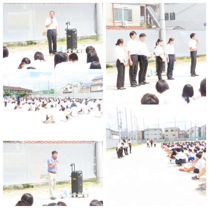 また、本日は教育実習生が最終日となります。3週間の学びや感謝の気持ちを全校生徒に伝えてくれました。実習での経験を、これから先に活かしてくれることを期待しています。