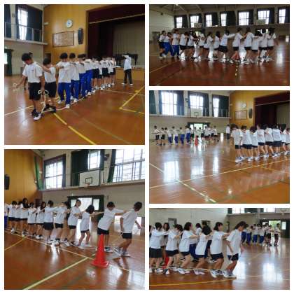 体育祭に向けては、1年生が初めてのムカデ競走の練習をしていました。最初はなかなか上手くいかない様子でしたが、練習を重ねるたびに少しずつ上手になってきました。