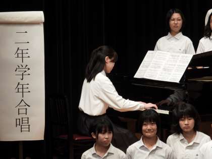 先日行われた合唱コンクールにて2年4組のEさんは学年合唱、クラスの合唱の伴奏者として活躍してくれました。2曲を完璧に弾いてくれました。「きらり☆」です。