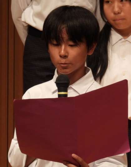 先日行われた合唱コンクールで1年2組のSさんはクラスのスピーチを行ってくれました。クラスが頑張って取り組んだ内容をしっかり伝えてくれました。「きらり☆」です。