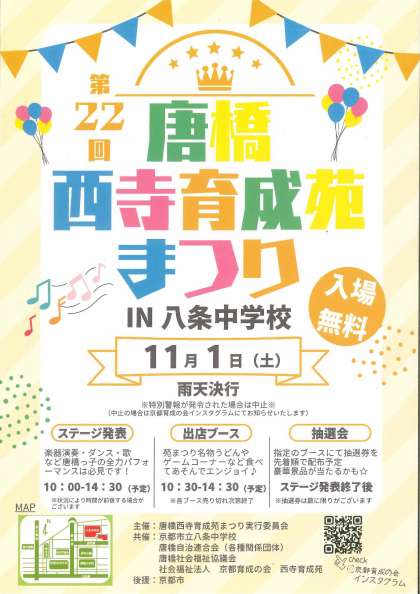 今年も八条中学校を会場に「西寺育成苑まつり」が開催されます。