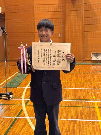 本日、総合教育センターで京都市中学校体育表彰が行われ、夏の全国大会で3位に入賞した柔道部3年生のМさんが表彰されました!