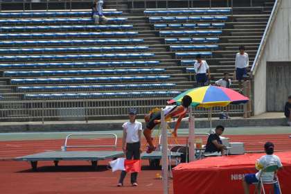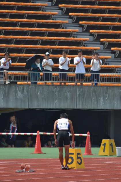 今日は,午前中に走り高跳び,午後には4種目の400mです。最後に400mとは。トラック競技の中では,この400mが一番キツイと言われています。競技場の気温は35.5度。よく頑張りました。