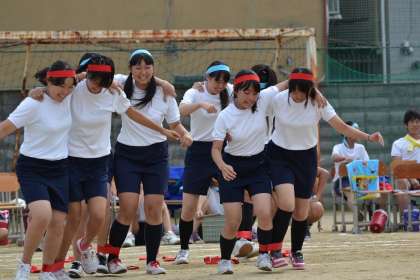 最初の競技は徒競走です。走るだけなのですが,これがどうしてなかなかパワーがいるのです。続いて女子の二人三脚,玉いれが行われました。玉いれには,今年もたくさんの地域の方々に参加をしていただき,1年生も楽しく競技できました。