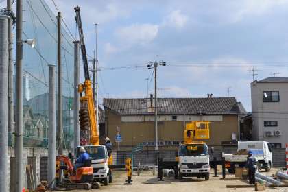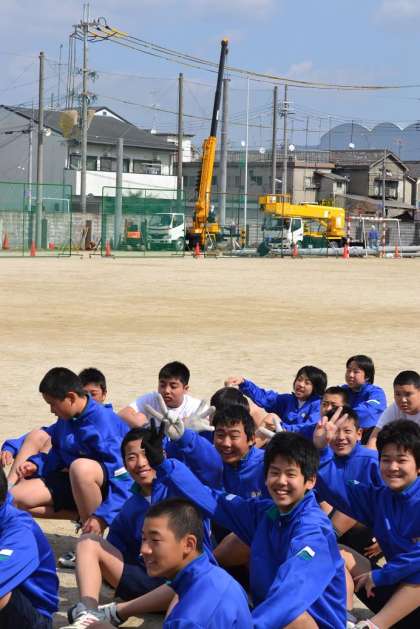 グラウンドの防球ネットの工事が急ピッチで進んでいます。なんとか来週の球技大会に間に合わせようと,業者の方々もがんばってくださっています。一部のネットは取り外され,古いポールから新しいポールへと変わって行っています。体育の授業や部活動も平行してやっていかなければならないのですが,安全第一です。十分に注意しながらやっています。